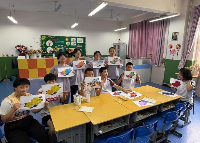 6月17日,在赵璐、花宇两位党员教师的带领下,首批助教团队深入六个班级协助开展教学帮扶活动。团队成员们充分发挥专业特长,精心准备了绘画、手势舞等互动类课程。课堂上,党员教师全程指导,鼓励志愿者们:“每一个孩子都是祖国的花朵,我们的责任是用党员的耐心和奉献精神,点亮他们心中的希望之光。要将党的温暖和专业服务送到最需要的地方。”志愿者们以极大的热情与耐心引导孩子们参与。折纸环节中孩子们专注的神情,手势舞时孩子们模仿动作的认真与脸上绽放的纯真笑容,绘画课上孩子们充满想象力的稚嫩笔触,都深深打动着在场的每一位团队成员。
