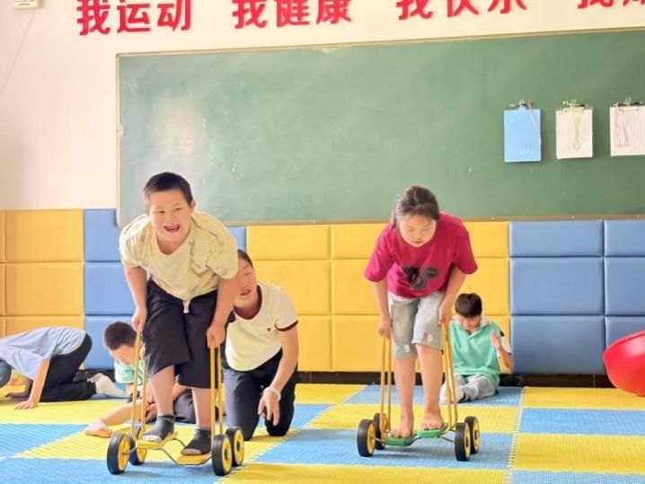 6月24日,第二批志愿团队在党员教师带领下兵分四路前往特殊留守儿童家庭进行暑期送教上门服务。送教前,特教公司老师详细介绍了孩子们的情况。党员教师组织团队成员进行了充分的研讨交流和案例分析,针对不同孩子的特点制定了精细化的个性化送教方案。对运动能力较好的孩子,侧重音乐律动、简单舞蹈和协调训练;对思维能力较强的孩子,则采用图文故事接龙、生活场景模拟等方式进行引导。带队党员教师花宇在活动中表示:“送教上门送去的不仅是知识和技能,更重要的是传递党和社会对特殊儿童群体的深切关爱。看到孩子们哪怕一点点的进步,都是对我们党员教师和青年志愿者服务奉献价值的最好肯定,也是我们践行育人初心的生动体现。”