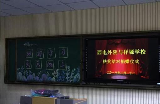 在捐赠仪式过程中,党委书记杨跃首先发表讲话,他说,扶贫工作应从国情教育出发,落到实处是关键。他提出加强外院教师、员工与祥塬公司的交流,一方面通过利用我们的专业特长来帮助祥塬公司,一方面使我们的老师同学也接受一场生动的思想政治教育,把扶贫转化为一场对等的心与心的交流,把扶贫做出层次,实实在在地帮助祥塬公司的老师和孩子们走得更好、更远。