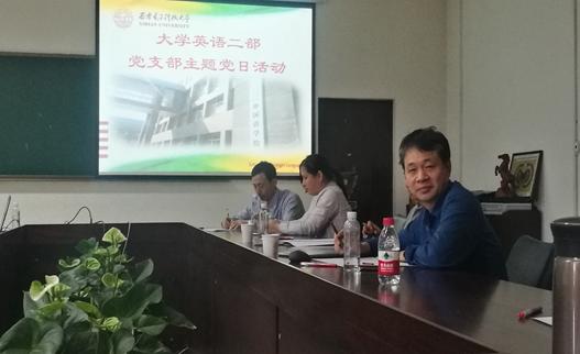 此次主题党日活动的主题为“落实全国教育大会会议精神 开展西电新时代本科教育大讨论 研讨大学英语教学改革”。首先,支部再次学习了习近平总书记在全国教育大会上的讲话精神,如何培养社会主义建设者和接班人,以及总书记在讲话中强调的“在六个方面下功夫”。