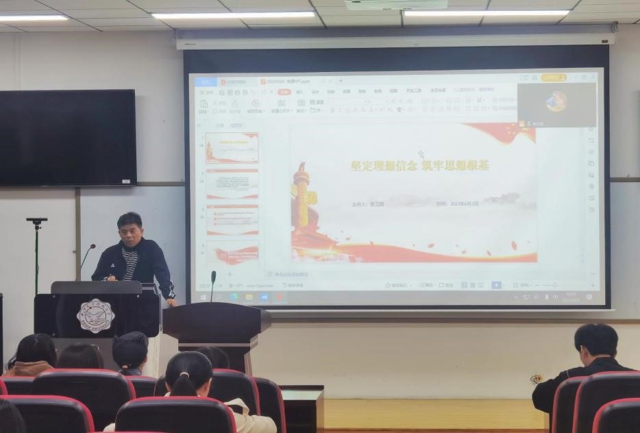 (通讯员:王静娴)为深入推进学习贯彻习近平新时代中国特色社会主义思想主题教育走深走实,进一步坚定对马克思主义和中国特色社会主义信仰,6月3日晚上7时,本科生党支部书记张卫国在信远Π区401会议室为支部全体党员上了一堂内容深刻、启发性强的党课。党课的主题为:坚定理想信念,筑牢思想根基。