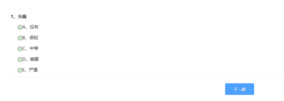点击“心理测评”图标后,可看到参与测试的量表“90项症状清单”;点击量表名称后面的“铅笔“图标,即可开始测试,如下图: