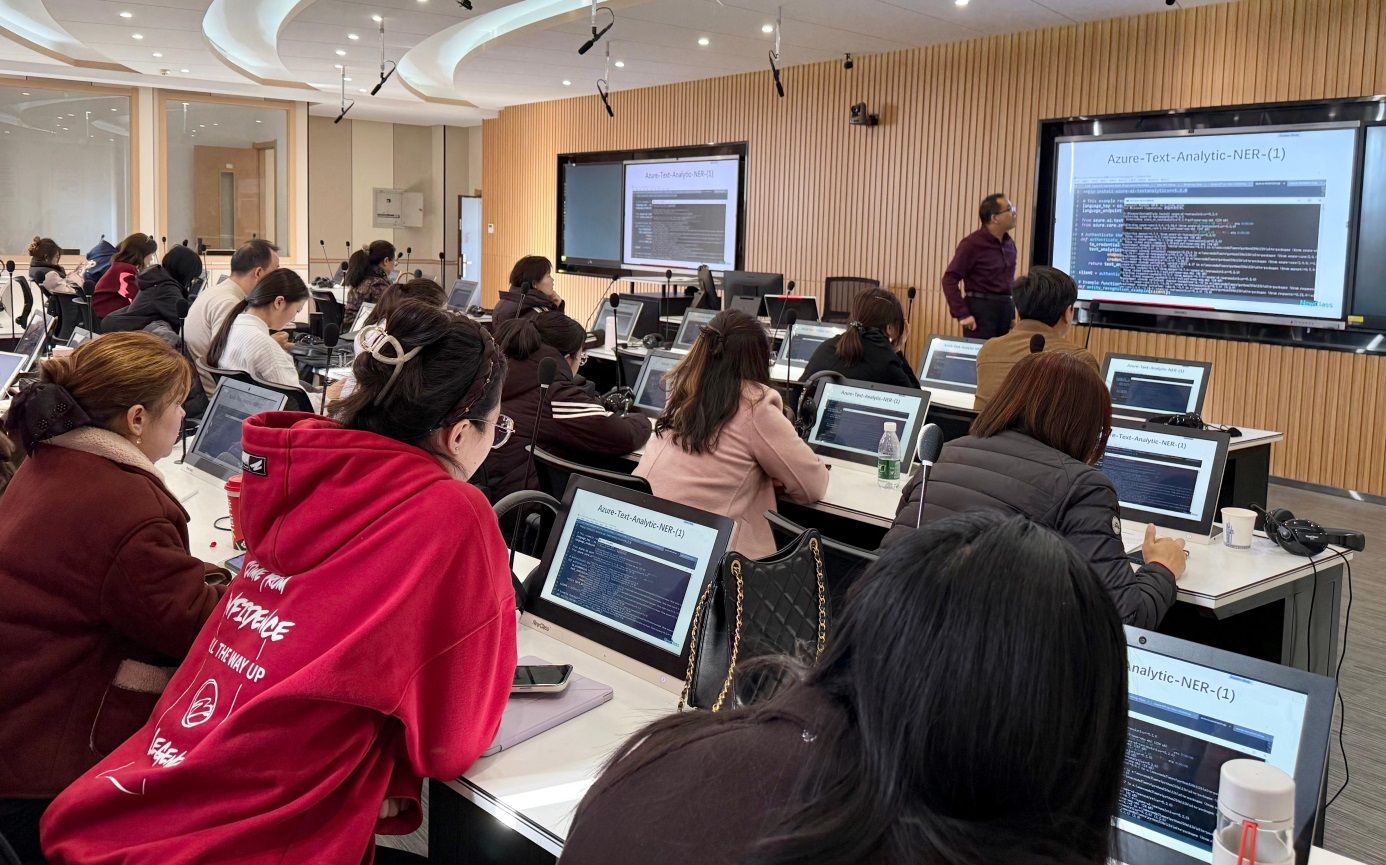 张鹏华老师以语言模型为切入点,详细介绍了语言模型的分类、工作原理、语言编码及语言平台等,重点聚焦于语言模型的选择、部署及其应用。他重点指出,面对如今种类繁多的各类模型,使用者应根据自己的使用目的、成本、模型的可用性、保密性等因素进行甄别和选择,以此确定契合自身需求的模型。与此同时,张老师还特别强调,语言模型的应用领域十分广泛,尤其在机器翻译、文本分析、句法分析、情感分析、翻译自动评估和翻译对等研究等方面均有着突出的表现。此外,张老师还详细讲解了主流语言模型平台的使用方法,通过实际操作界面展示的方式,让师生对这一前沿领域有了更为深刻、全面且直观的认识与理解。