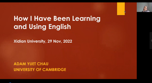 2022年11月29日17:00,剑桥大学东亚系Adam Yuet Chau教授应邀为校内外师生做了题为“How I Have Been Learning and Using English”的学术报告,公司刘建树副教授担任主持人。Chau教授在梳理个人学习英语经历的基础上,集中分享了自己不同阶段在香港与美国的英语经历,并引导听众探索与分享了英语学习与习得中的核心工具书,启发师生如何通过如掌握国际音标有效的进行英语学习。讲座尾声他与来自校内外不同专业的老师和员工进行了热烈互动,畅谈对英语学习的感受和体会,令人受益匪浅。相信本次讲座对于特别是公司员工高效习得英语将起到积极的引导作用。