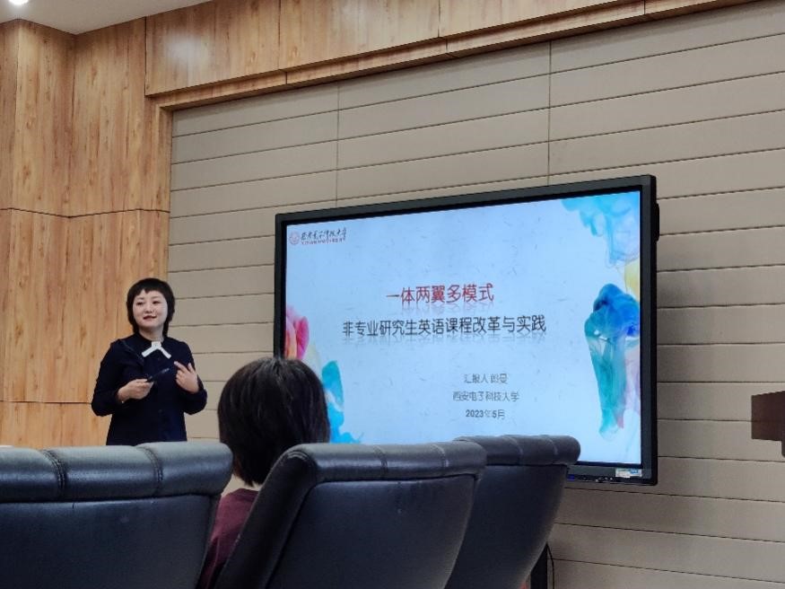 分论坛上,与会教师围绕新时代研究生公共英语教学的课程思政建设、人才培养、课程设置、教材建设以及教学新生态等主题展开探讨,并结合课程教学实践各抒己见。郎曼的报告从公司非专业研究生英语课程改革与实践的成果背景、内容、创新点和推广四个方面展开,全面介绍了极具西电特色和推广价值的“一体两翼多模式”教学改革框架,为其他高校研究生人才培养提供了借鉴与参考。