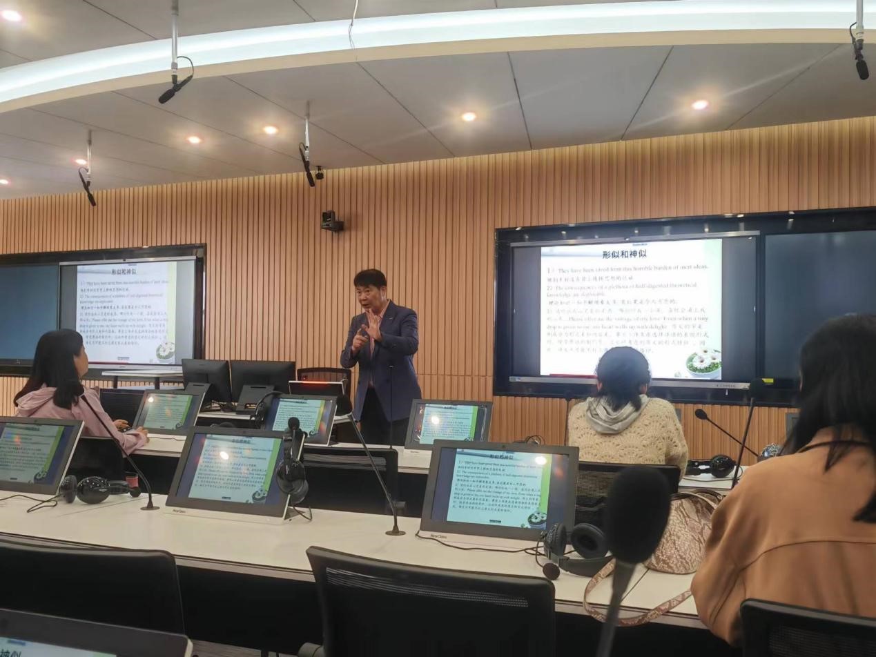 接着谢旭升教授从接受美学的角度出发,对中译外作了十个方面的美学价值总结:“一、各美其美,美美与共;二、翻译重塑符号的美学价值;三、意美、音美、形美;四、写意美与写实美;五、外显美与内隐美;六、形合美与意合美;七、形散美与形聚美;八、朴实美与华丽美;九、动态美与静态美;十、朦胧照与写真集”。谢教授拥有深厚的翻译理论素养和丰富的翻译实践经验,在讲座中以大量翻译实践案例对这十个方面的美学价值进行诠释,深入浅出地对翻译中有代表性的实战问题进行分析和解说,更高屋建瓴地指出解决思路和解决方案的方向所在。