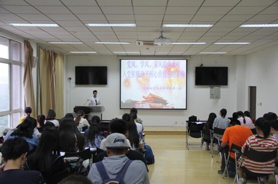 唐建旺老师首先简要介绍了西电的三级党校制度,对各位来自不同班级的入党积极分子能加入到党的基本知识培训班表示热烈欢迎,希望学员们以切实行动积极向党组织靠拢。随后,唐老师对党风、学风、家风进行了详细解说。