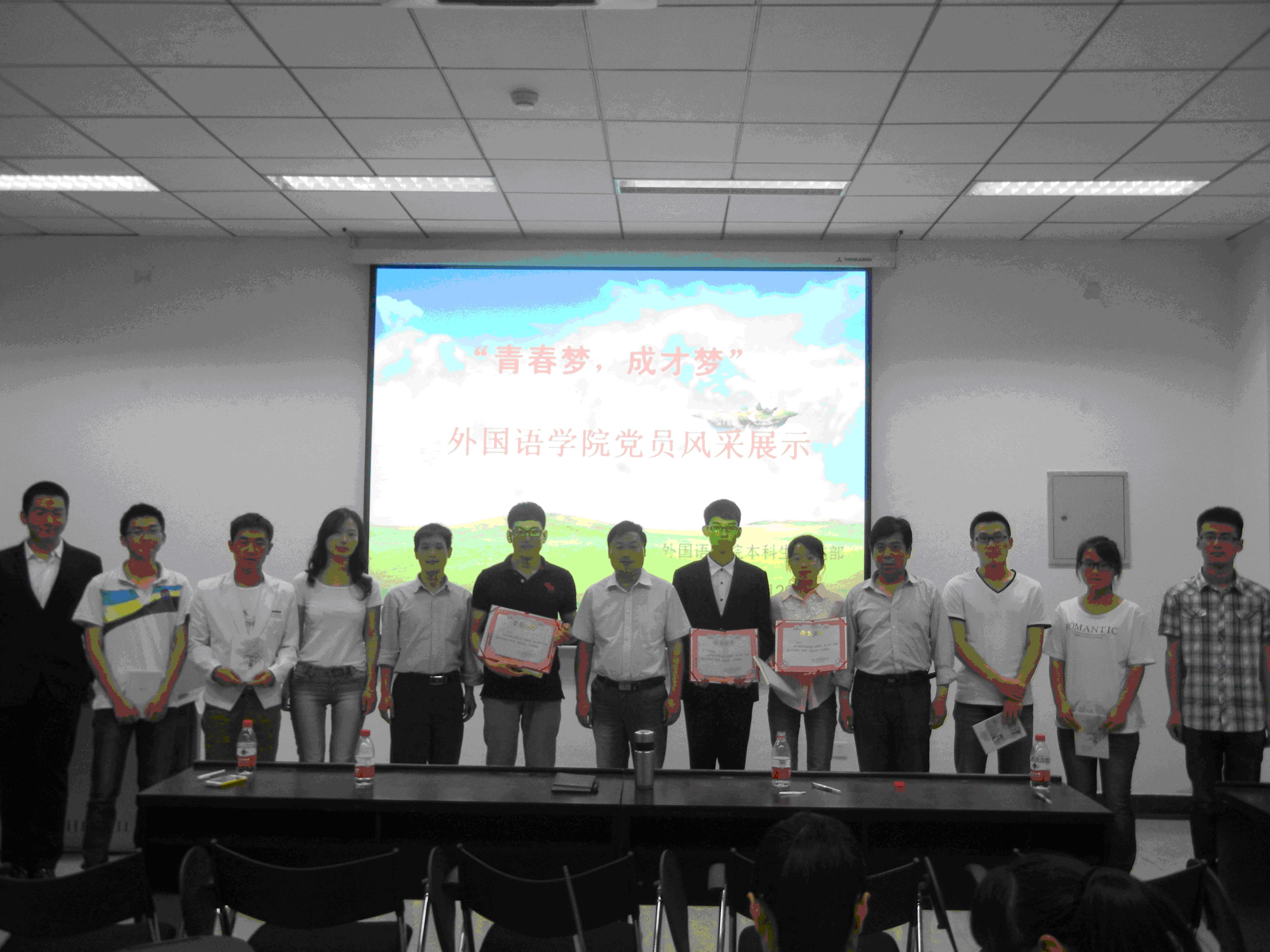 经过一个小时的精彩角逐,比赛最后产生了一名一等奖,一名二等奖,一名三等奖和五名优秀奖,由各位评委为各位选手一一颁奖并合影留念。最后外国语公司党委副书记独国社关于本次活动做了总结,他希望全体党员向优秀的党员看齐,向优秀的人和事学习,勤奋学习努力工作,用自己的优秀影响身边的人,成为“三爱三节”的典范,为实现自己的青春梦想而努力奋斗!