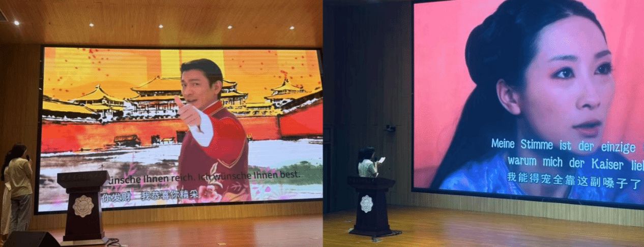 大赛正式开始。选手们以抽签顺序分上下半场依次登场,围绕经典影视、动漫、文学作品片段展开精彩演绎。法语的浪漫抒情、日语的细腻传神、德语的严谨深邃、韩语的灵动俏皮,还有外国职工用中文对国内外经典影视片段的深情演绎,引发了观众的强烈共鸣,现场掌声喝彩声此起彼伏、不绝于耳。每当出现精彩演绎,席间便爆发出热烈欢呼,气氛持续升温。