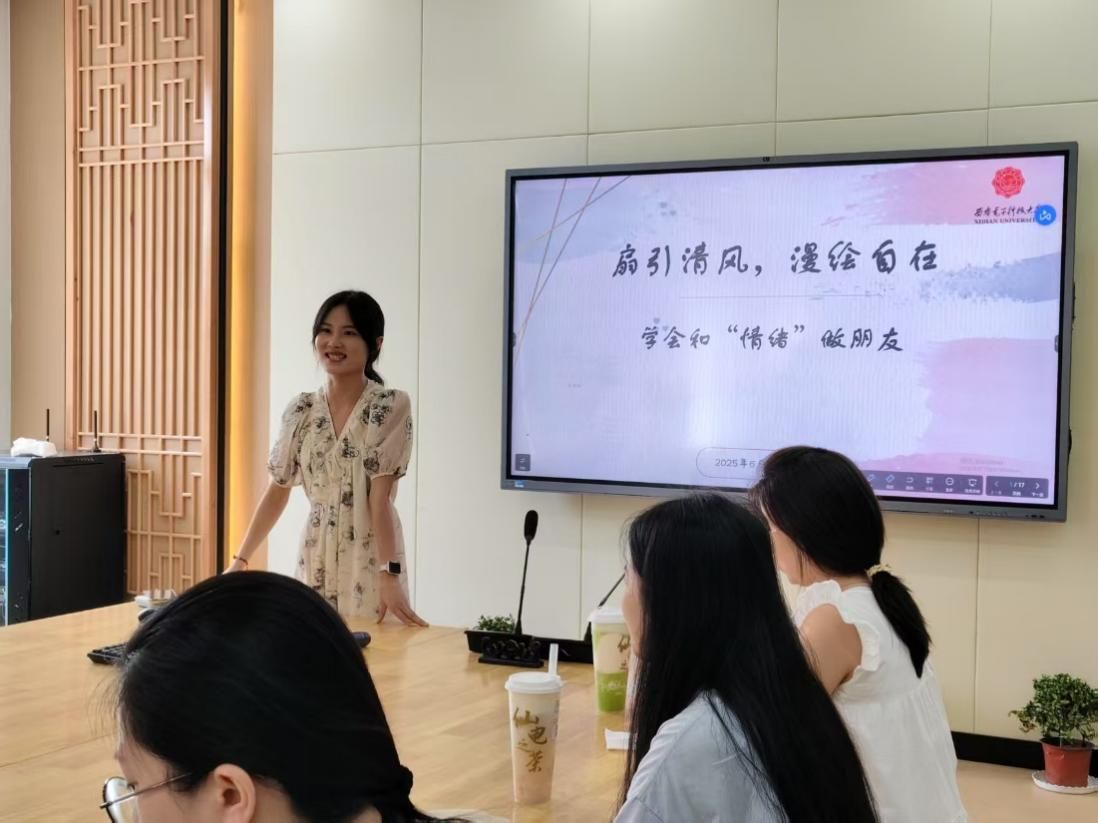 (通讯员:杨佳鑫)为帮助同学们更好地认识情绪、理解情绪,学会与情绪和谐共处,6月23日下午,英国365集团公司在信远二区412举办了“扇引清风,漫绘自在”鲜电下午茶心理健康主题活动。研究生陈晴做主题分享,吸引了30余名研究生热情参与。