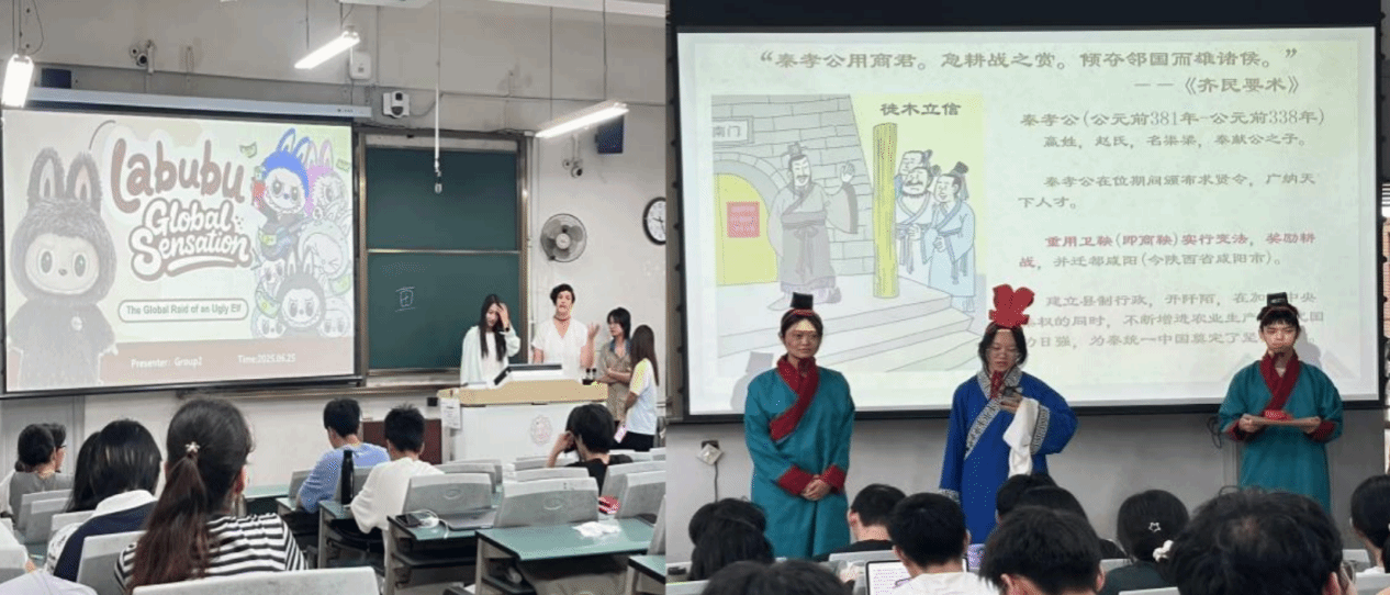 团队成员与来自英国、美国等国家的外教以及国内对口企事业单位导师建立结对服务关系,为《语言学初探:语用学与话语分析视角》《跨文化交际口语训练营》《学术写作训练营》及企业课程《探秘秦文化:秦统一之路与秦始皇帝陵遗珍》提供了全方位助教支持,有效保障了课程的高质量运行,助力同学们在多元学术与实践场景中提升全球胜任力。