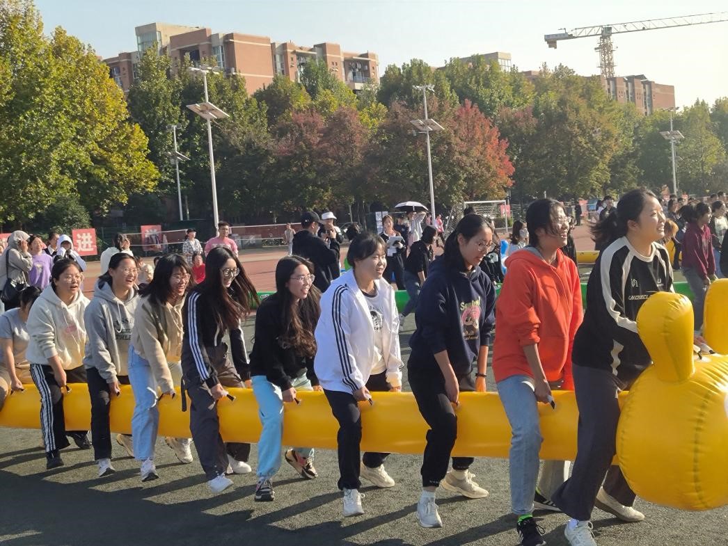 (通讯员:唐建旺 赵晨曦)金秋十月,秋阳如织。10月28日,由体育部和党委研究生工作部承办的“浪潮杯”第八届溢彩研途趣味运动会在南校区北田径场顺利举行。本届趣味运动会旨在进一步打造西电校园体育健康文化氛围,落实“五育并举”,引领和激励广大研究生积极投身体育锻炼,为研究生高强度的学习和科研工作提供身体保障。本次趣味运动会以互动和协作的团队项目为主,共设置了三人篮球联赛、30人*60米蛇形跑接力、50米绑腿同行、拔河、集体跳大绳、8人持竹竿集体往返跑接力、毛毛虫竞速、动感五环8个竞赛项目,吸引了共16个公司参赛。