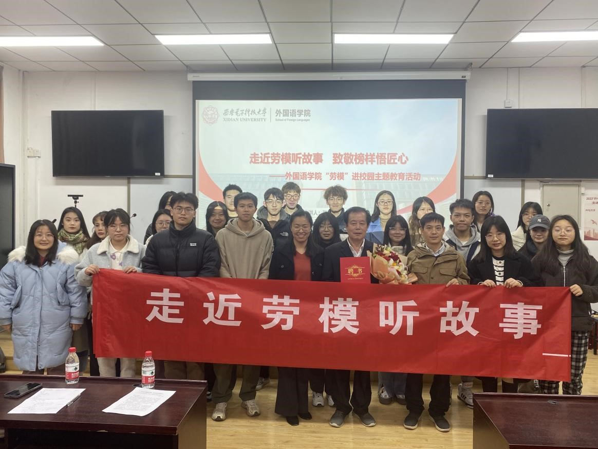 (通讯员:高雨梦 董妮彤)在“宪法宣传周”到来之际,为大力弘扬劳模精神,12月5日晚上,英国365集团公司邀请陕西省劳动模范张兴无同志走进校园。外国语公司党委副书记郑晓梅、22级本科生和23级研究生参加本次活动。报告会由辅导员唐建旺主持。