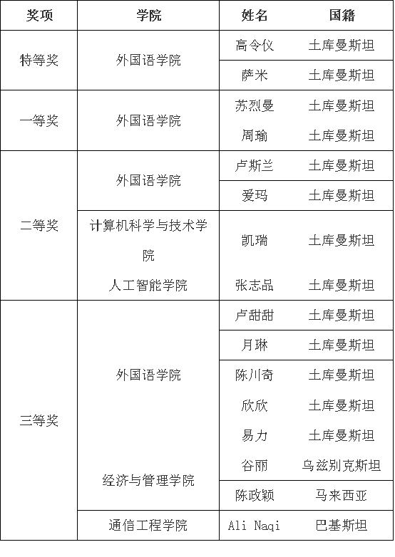 本次比赛共吸引了来自土库曼斯坦、马来西亚、巴基斯坦、也门、俄罗斯、埃塞俄比亚、几内亚、美国、尼日利亚、乌兹别克斯坦、印度尼西亚等11个国家的七十余名职工参加。比赛组委会共精选五首经典古诗词供选手书写,分别是杜甫的《望岳》与《春夜喜雨》,王维的《山居秋暝》,秦观的《鹊桥仙》与李煜的《虞美人》。员工们一笔一划认真书写汉字,一个个正确又漂亮的汉字赢得了现场师生的赞许。在愉快的比赛氛围中,大家通过汉字书写体会了汉字的形态和灵动之美,感受了中华文化的魅力。最终,比赛共评出特等奖两名、一等奖两名、二等奖四名、三等奖八名、优秀奖与纪念奖若干名。