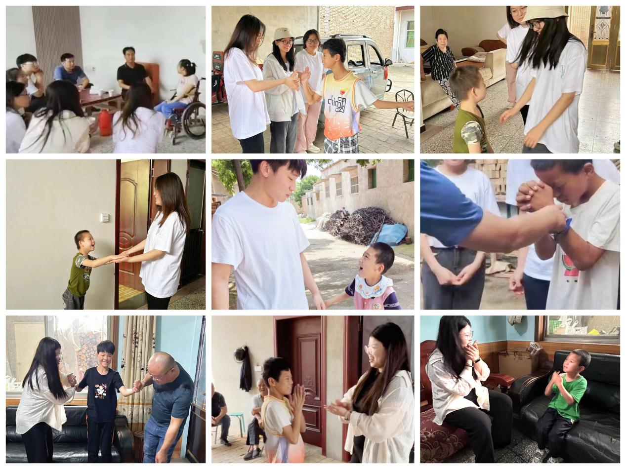“情暖童心”关爱留守儿童志愿服务队深入陕西省蒲城县特殊教育公司、乡村特殊儿童留守家庭等地开展为期一周的“外语桥”支教送教志愿服务。此次志愿服务以“送知识、送温暖、送陪伴”为主线,全体志愿团队成员进入特殊留守儿童家庭共计6户人家分批次进行培训和送教服务,其中包括脑瘫儿童、自闭症儿童、语言发育障碍儿童以及身体残疾儿童等。送教前,针对特殊儿童在知识接受能力、情感表达特点、行为模式等方面所呈现出的多样化需求,送教团队通过多次的研讨交流和案例讨论,确定了全面且精细的个性化送教方案。送教过程中,同学们与特殊儿童家庭的老人聊天,帮助他们干些力所能及的家务,陪因病长期待在家里的脑瘫孩子做游戏,和孤独的残疾儿童聊天。面对性格开朗善于模仿学习的特殊儿童,志愿团成员会选择为他们唱英文儿歌,并做一点字母游戏。面对患有自闭症孤独症的特殊儿童,送教团队主动耐心地加入孩子感兴趣的游戏,通过陪伴和交流鼓励他们逐步敞开心扉。面对因身体残疾无法正常行走的孩子,团队成员们就耐心陪着孩子一遍遍进行康复训练,让枯燥沉闷的训练在声声鼓励和陪伴下也变得有趣。面对认知发育障碍的特殊儿童,志愿团成员耐心反复地教孩子进行识别与记忆,帮助他们逐渐掌握生活技能。