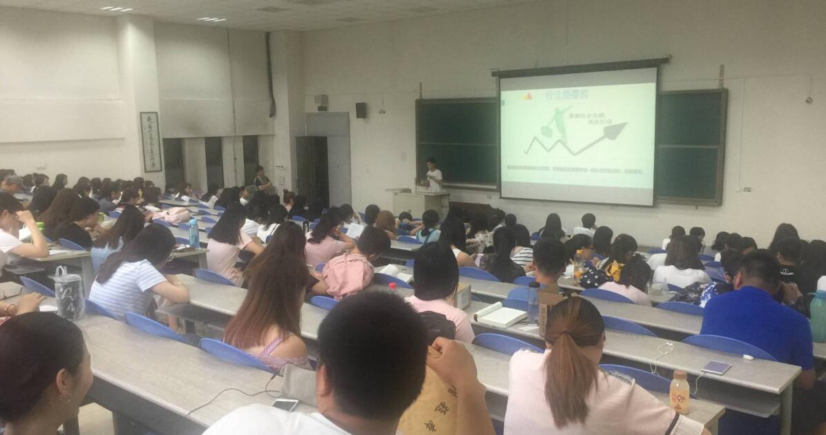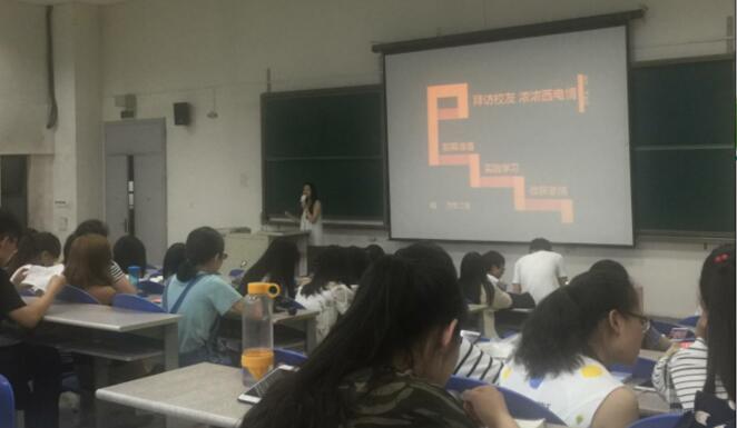 在经验分享环节,张欣悦学姐向我们展示了她去年进行的暑期实践,着重介绍了他们去年到北京采访员工的经历,从出发到见面,使同学们体会到他们做实践的艰辛与收获。重点强调了暑期实践活动的安全问题,接着提醒同学们注意利用互联网宣传自己的实践流程及感悟,而后让同学们注意成果转化,希望同学们积极整理实践成果,做好总结。最后,她鼓励同学们积极进行暑期实践,从本专业出发,强化对自己专业的认识及自信,勇于克服困难,找到自己的人生目标。她的观点和建议得到了同学们的广泛认同。