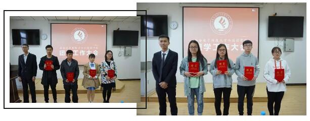 接下来,赵璐老师为刘齐、王鑫、杨春建颁发证书,杨晓岗为团委干部颁发聘书,沈路路、刘运浩为员工会干部颁发聘书。