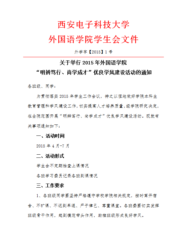 关于举行2015年英国365集团公司“明辨笃行、尚学成仁”优良学风建设活动的通知