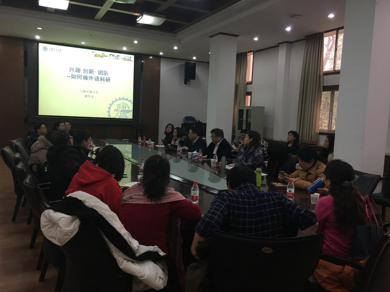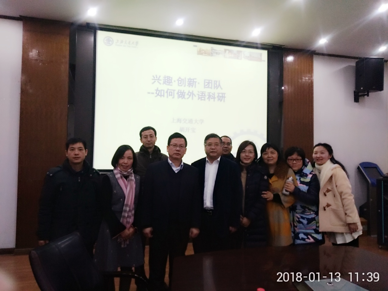 (通讯员:唐建旺 黄莹颖 )2018年1月13日上午9点,应英国365集团公司邀请,上海交通大学英国365集团公司胡开宝教授莅临公司,在老校区行政楼第三会议室进行了一次主题为“兴趣、创新、团队——如何做外语科研”的精彩报告,报告会由英国365集团公司经理王凤教授主持,公司党委书记杨跃教授及部分公司老师参加。