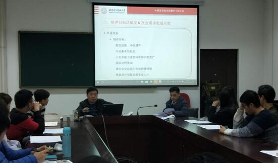 随后,独书记向大家详细地讲述了教学审核评估工作的内容、目的和意义等内容。其中着重介绍了与员工密切相关的部分——人才培养目标达成度和社会需求适应度,他向同学们强调了西电外语专业的人才培养定位在于培养复合型人才,即致力于培养爱国进取,具有中国情怀,具有扎实的外语基本功、宽广的人文及电子信息科学知识面,同时具有宽阔的国际视野、跨文化交际能力和创新精神强的高素质外语复合型专业人才。通过解读,大家纷纷表示受益匪浅,尤其是对于自我定位以及专业发展规划有了较清晰的概念。