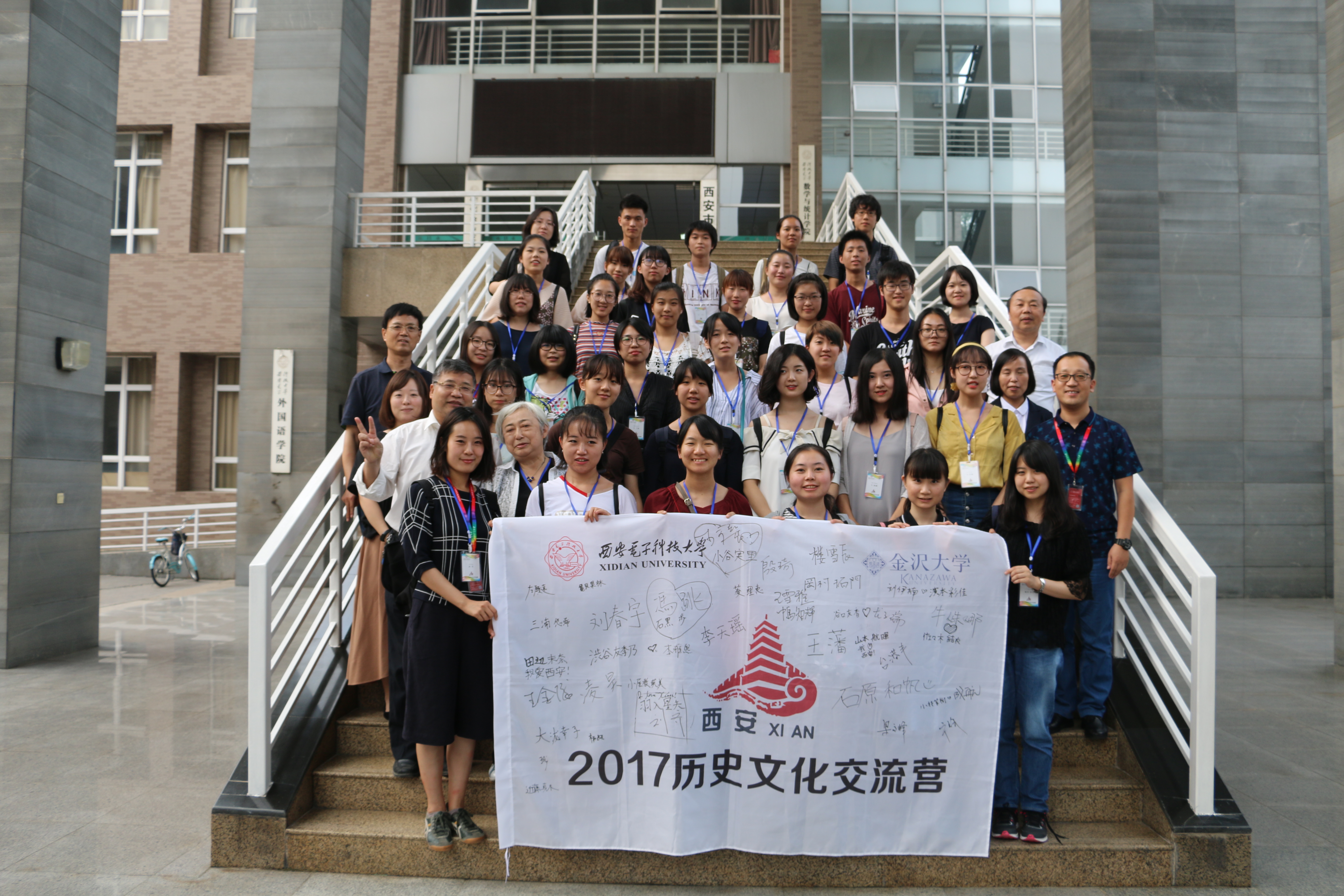 9月11日,金泽大学与公司日语系共32名员工参加了长安历史文化讲座,对中国・西安的历史、文化、名胜等有了初步的了解。12日至13日,两校员工一起参观了陕西省历史博物馆、兵马俑、青龙寺、古城墙、回民街等具有悠久历史、并与日本有着深厚渊源的名胜古迹,在实际走访中体验西安的历史文化和人文风情。14日,两校员工通力合作整理此次活动的心得体会,在两校的领导、老师面前进行了精彩的总结演讲和感想发表。