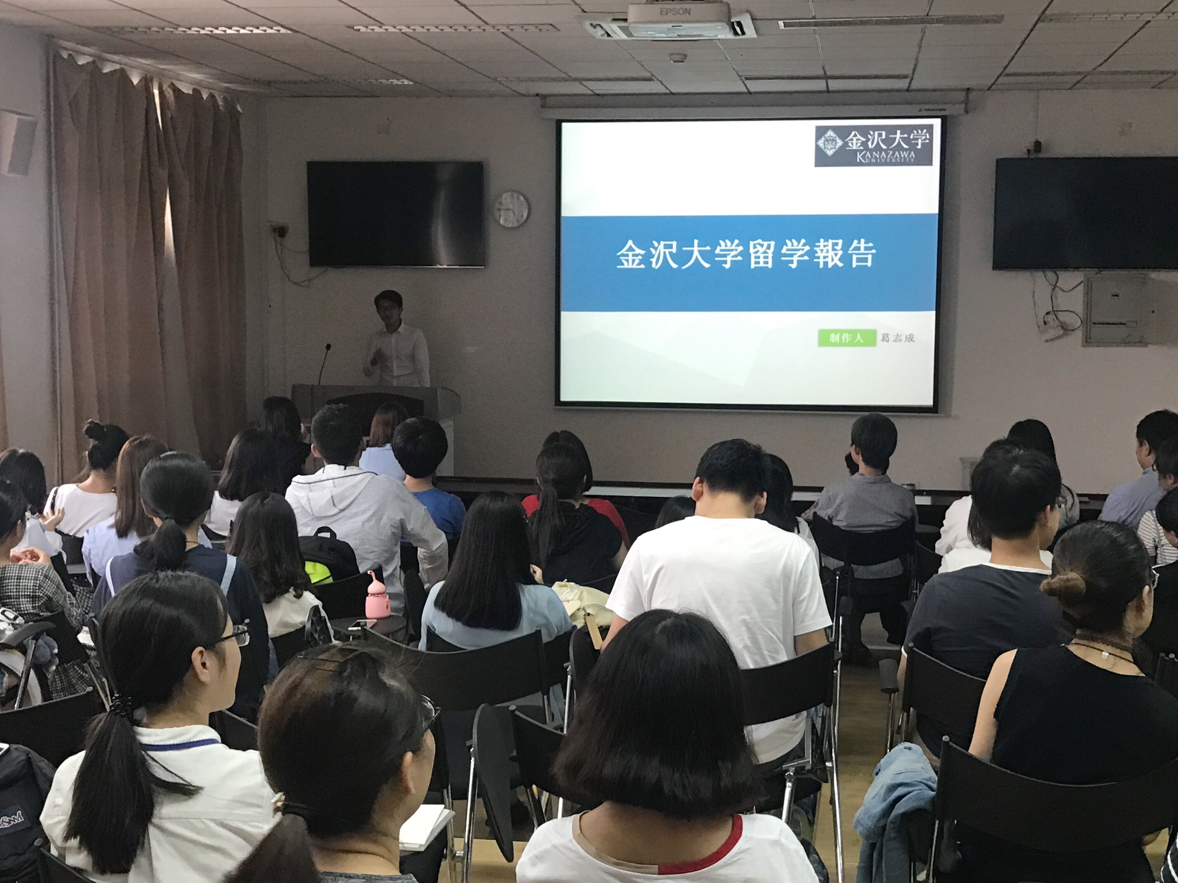 在留学报告环节,今年4-8月间赴日本金泽大学留学归来的日语系系四年级员工葛志成、王晨、王喆三名同学分别介绍了自己的留学经历和体会。报告涵盖了公司概况、留学项目、课程体验、文化体验、生活情况等方面的内容。三人一致认为此次留学很有意义,收获颇丰,并强烈建议在场的同学们积极参与留学项目,去实地体验和了解日本的语言和文化。三名同学图文并茂的报告和生动风趣地讲解,激发了现场其他年级同学对赴日留学的浓厚兴趣。近年来,日语系着力加大对外合作交流,为员工成才便利条件,进一步提升了日语人才的培养质量。