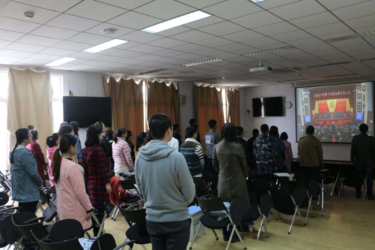 (通讯员:唐建旺 摄影:吴雅韵)10月18日上午九点,外国语公司党委组织公司全体班子成员、各系部党支部书记、系部主任、研究生、本科生一百余人在信远402多媒体教室观看十九大开幕式。开幕式在庄严、雄壮的国歌声中开始,全体师生起立,齐唱国歌。并为中国革命的伟大胜利做出牺牲的革命先烈默哀致敬!“人民对美好生活的向往,就是我们的奋斗目标!”不忘初心,继续前进!这是对人民的深情表白,也是对中国未来的庄严承诺!