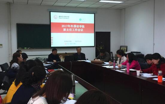 他希望,全体班主任、辅导员要根据公司公司的工作安排,结合各班实际积极开展学风建设活动,重点发挥班主任在学风建设中的作用,特别指出要将“四个一”计划要落到实处,要求每位班主任老师每学期指导员工“读一本外文名著,观看一部外文电影,组织一次学术活动,排练一个外文节目”,他希望每位班主任老师都能将“四个一”计划作为自己工作的抓手,认真负责落实好班主任工作,并对13级毕业班员工的就业情况,向毕业班班主任老师提出要求,希望班主任老师能帮助引导员工合理定位,设定适合员工本人的就业目标。最后他对班主任推动公司员工工作做出的贡献给予肯定,并表示感谢,对工作成绩突出的班主任老师提出表扬,希望班主任老师能继续保持饱满精神状态,发扬优良工作作风,加强与员工的沟通联系,认真努力做好班主任工作。