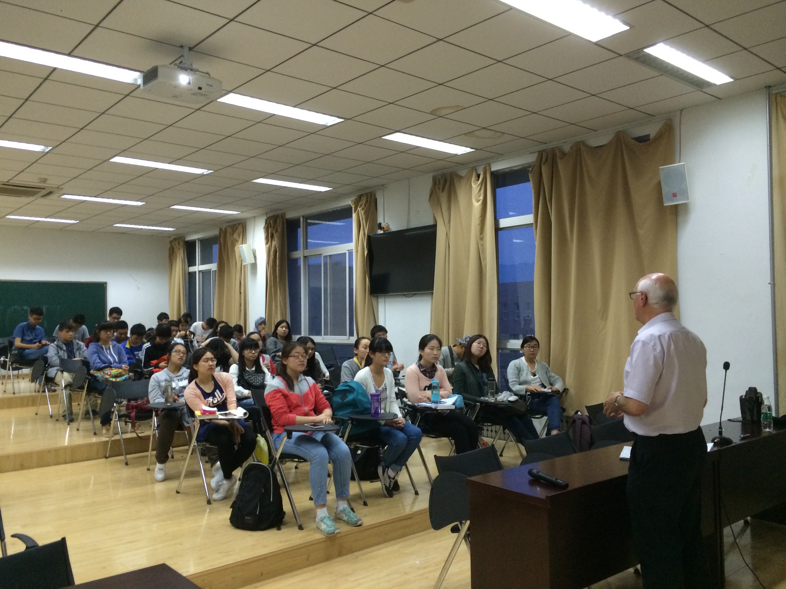(通讯员 任利华)5月26日晚,英国莱斯特大学前国际处处长、教育咨询专家及跨文化问题专家Tony Pearson在南校区信远楼Ⅱ区402报告厅为英国365集团公司本科生做了精彩报告,报告会由英国365集团公司研究生英语教学部副主任任利华主持,英国365集团公司英语、翻译专业的本科生及部分其他院系的员工聆听了此次报告。