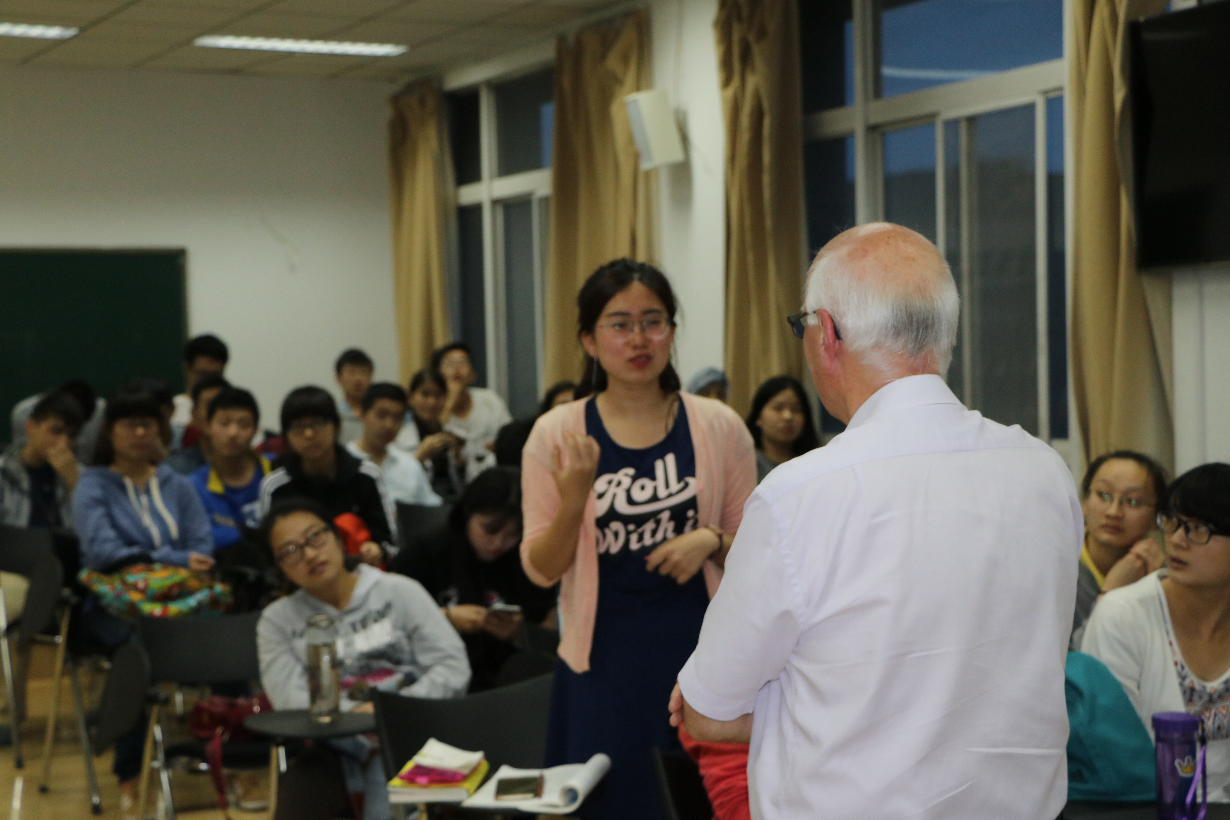 来自英国365集团公司英语和翻译专业各年级的近70名本科生聆听了讲座,现场气氛热烈,Tony Pearson先生幽默风趣的讲解赢得了阵阵掌声。在讲座后的互动环节,来自英国365集团公司及其他院系的同学们踊跃发言,Tony Pearson 先生认真聆听并详细解答了同学们的问题。通过此次讲座,同学们加深了对英国大学硕士教育的全面了解,特别是对于有志于前往英国深造的员工有很好的启发意义和指导价值。