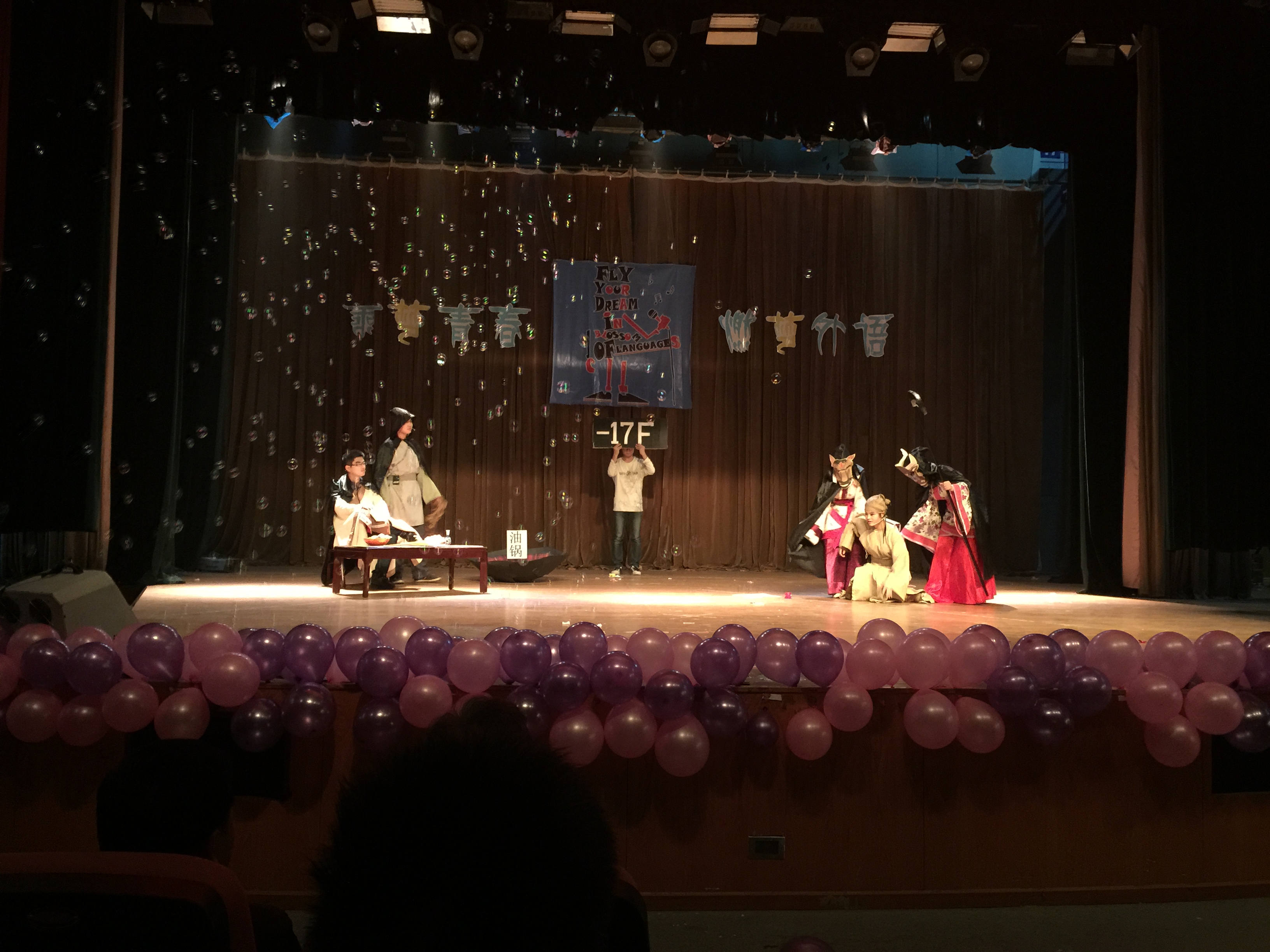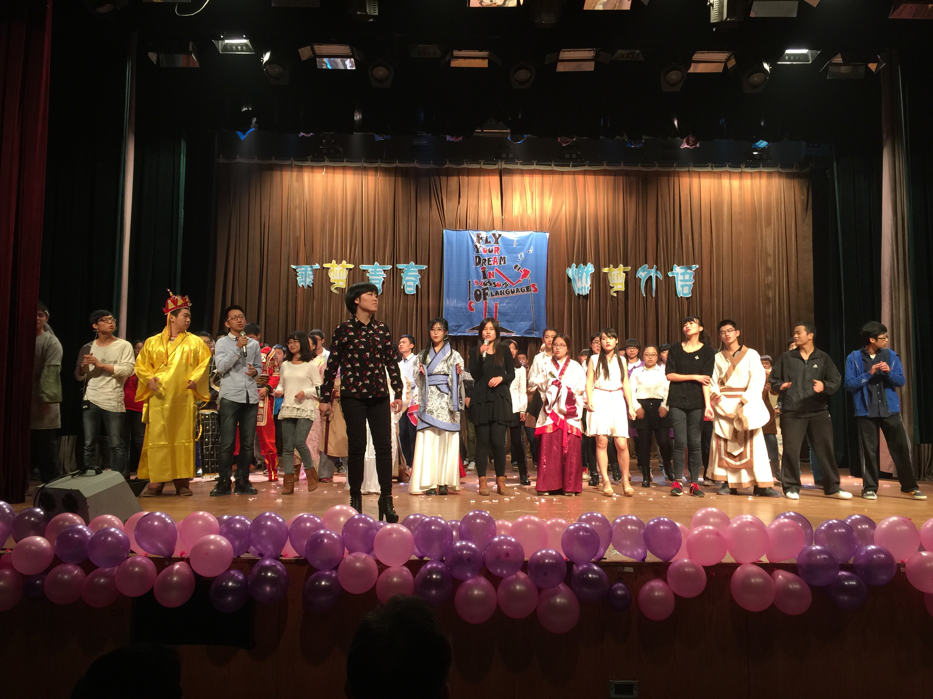 整场晚会中由大二英语班员工改编的英文话剧《大话西游之月光宝盒》 、研究生的莎士比亚经典话剧《李尔王》 、以及大二日语班成功改编的日语话剧《武林外传》等戏剧,展示了同学们精湛的演技和出色的外语水平,演出赢得了观众们的阵阵掌声。本场晚会除了戏剧,还增加了许多形式多样、丰富多彩的优秀节目。如大二日语班的两名女生,带来了曾在全国Cosplay大赛上获奖的节目《千本樱•一夜物语》,让观众们耳目一新;大二英语班的美剧《生活大爆炸》的配音技惊四座,精彩纷呈;大一日语班的日文版《后来》,带领观众回到了懵懂的青涩岁月,感受到青春的无知与无奈;国际教育公司的四位外国友人为观众献上了拿手的RAP;日语老师陈会林和日语外教安中妙带来的歌曲《川の流れのように》,与大二英语班的两位同学带来的《我心永恒》,以及街舞社同学们酷炫的街舞、魔术,都赢得了观众的阵阵掌声,将晚会推向一个又一个高潮。