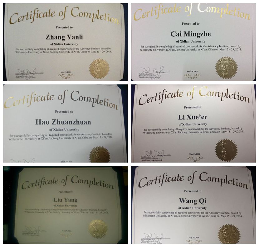 新颖的美式教学方法让参加本次培训营的六位同学收获颇丰,不但拓展了视野,也提高了几位同学的自主学习能力。参加本次培训营的六位同学均表示两个礼拜的培训不仅学习了辩论的专业知识,提高了英语口语能力,并开始关注环境的可持续发展,同时也结识了中美新朋友,还锻炼了批判性思维,每个人都受益匪浅。在培训营结束时,六位同学都获得了由Willamette University颁发的培训结业书。