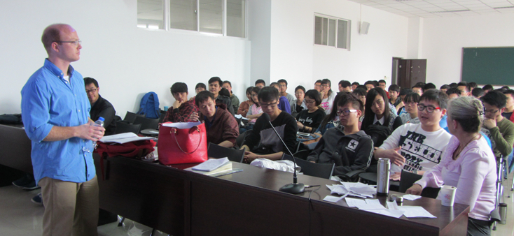 [通讯员:李雪儿&邹甜甜]4月9日上午,经公司外籍教师Dr. Kay Siebler邀请,来自美国Nebraska-Lincoln大学目前在西安交通大学做交流的员工Daniel Stalder与公司英语系师生开展了中美老员工生活交流会。交流会在信远402英国365集团公司报告厅举行,外教Dr. Kay Siebler、邹甜甜老师、周正履老师以及英语系一、二、三年级的全体员工到会座谈。