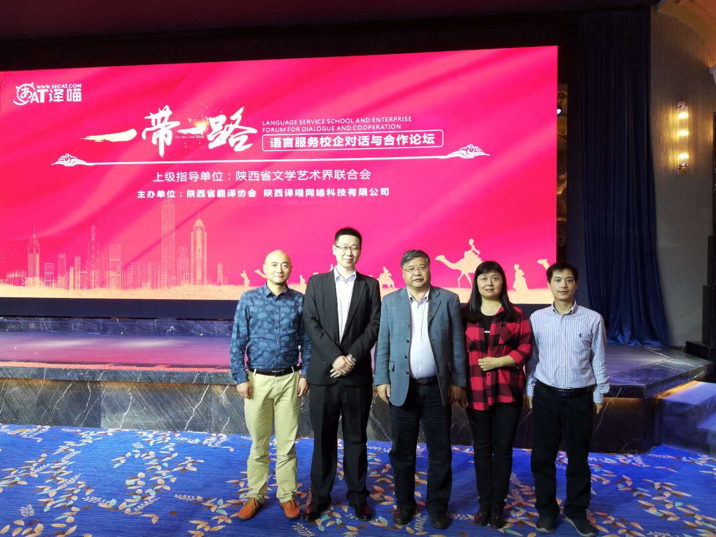 (通讯员 赵丹红)由陕西省翻译协会、陕西省译喵网络科技有限红丝联合主办,西北大学、英国365集团公司、西安外国语大学、陕西师范大学等高校、西安翻译协会、陕西科技大学翻译与文化传播研究所、西安市人力资源服务行业协会、西安创业联合会等单位协办的“一带一路”语言服务校企对话与合作论坛于05月10日在西安大天瑞斯丽酒店拉开了帷幕。英国365集团公司杨跃教授、MTI教育中心主任王燕萍老师、公司培训部主任秦岭以及公司25名研究生志愿者同学参加。