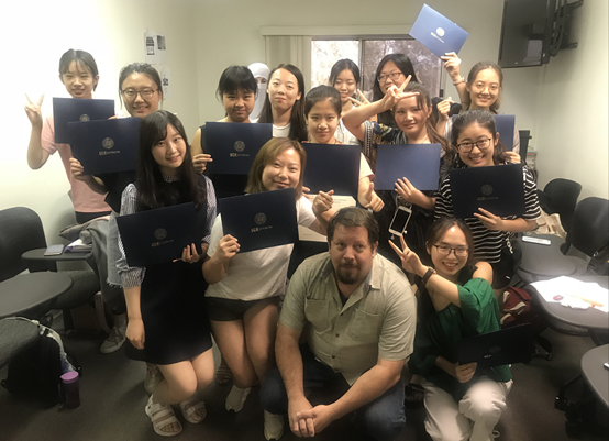 (通讯员:赵璐)“Congratulations! You guys have come to a strange country, talking and getting along with people from different places all over the world,experiencing exchange and the collision among different culture. All of your teachers are full of praise for you, saying that you are amazing students. You have overcome your fear of the unfamiliar surroundings, and you have completed a 4-week study. Now I declare -- congratulations on your completion!”8月25日,美国加州大学河滨分校的一个小型结业仪式正在举行,来自英国365集团公司英语和翻译专业的12名同学怀着雀跃的心情从Matt老师手里接过蓝色烫金的结业证书,为自己此次暑期XDU-UCR语言文化训练营之旅画下一个圆满句号。