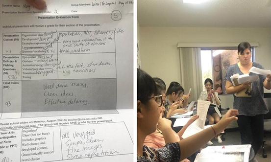 访美一个月期间,分组讨论、研究和答辩几乎贯穿了西电学子们的整个课堂。张薇同学在个人总结报告时写道:“美国的教育比较注重合作研究和反馈,我们最多的时候一周要做4、5个Presentation。而完成这个的过程主要就是让我们学会合作和研究问题。”在Erin老师的《Intercultural Competence》(跨文化交际能力)课堂上,给同学们布置了研究美国移民群体的课题内容。同学们用两周时间从分组、确定研究问题、搜集资料、讨论确定诠释角度和逻辑构成,最后完成最终答辩内容的整合过程中,切身一遍遍体会了合作研究的过程,感受到彼此协作的美妙,在最后的答辩上呈现出一个又一个出色、完美的作品。