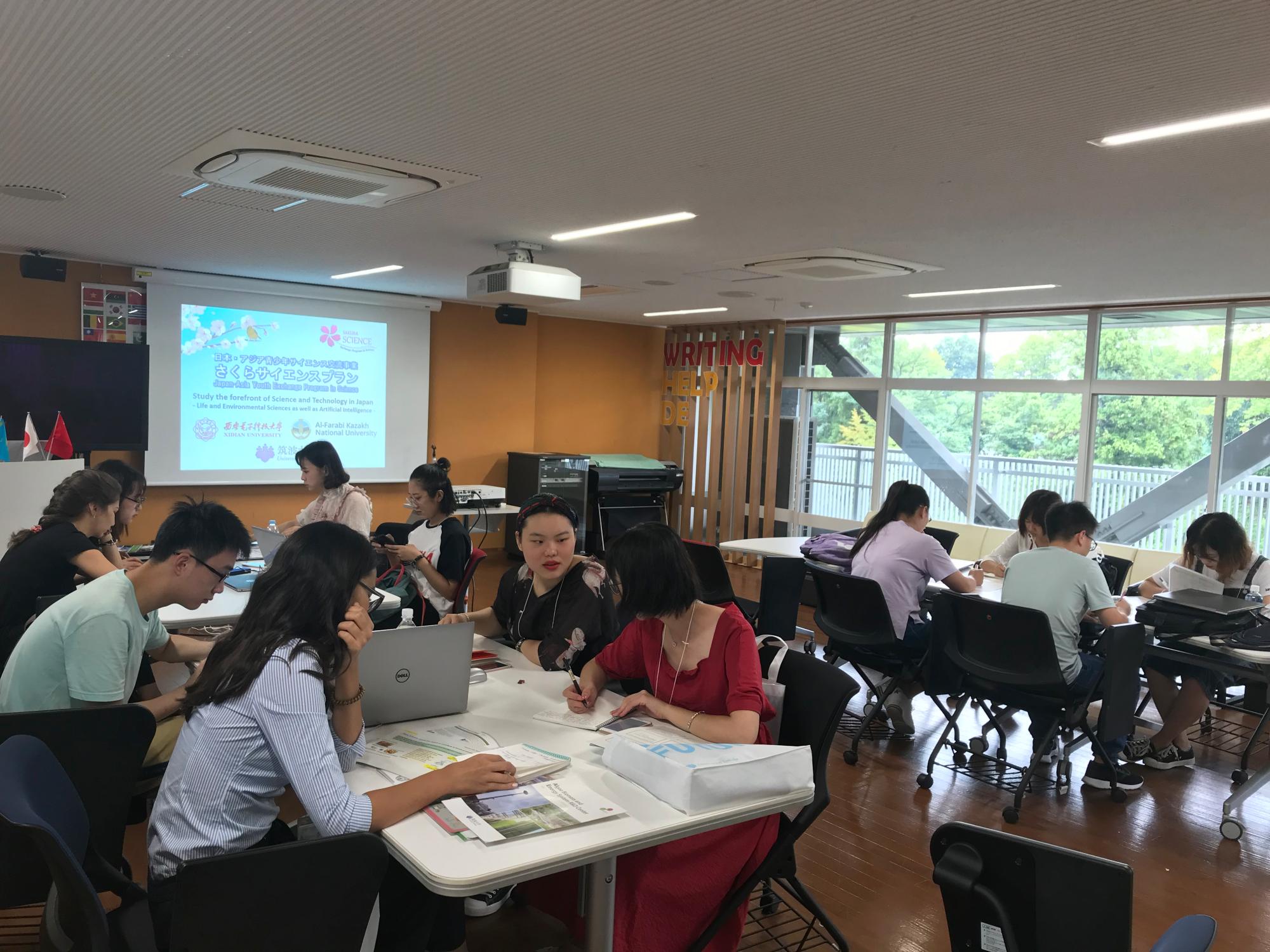 在访问的尾声,同学们和同行的哈萨克斯坦员工一起讨论这几天的收获,并进行了生动的总结发表。通过和别国员工一起共同完成发表,员工们不仅体验了筑波大学国际化的课堂环境,更锻炼了外语表达能力和国际交流能力。对国际化视野的养成大有裨益。