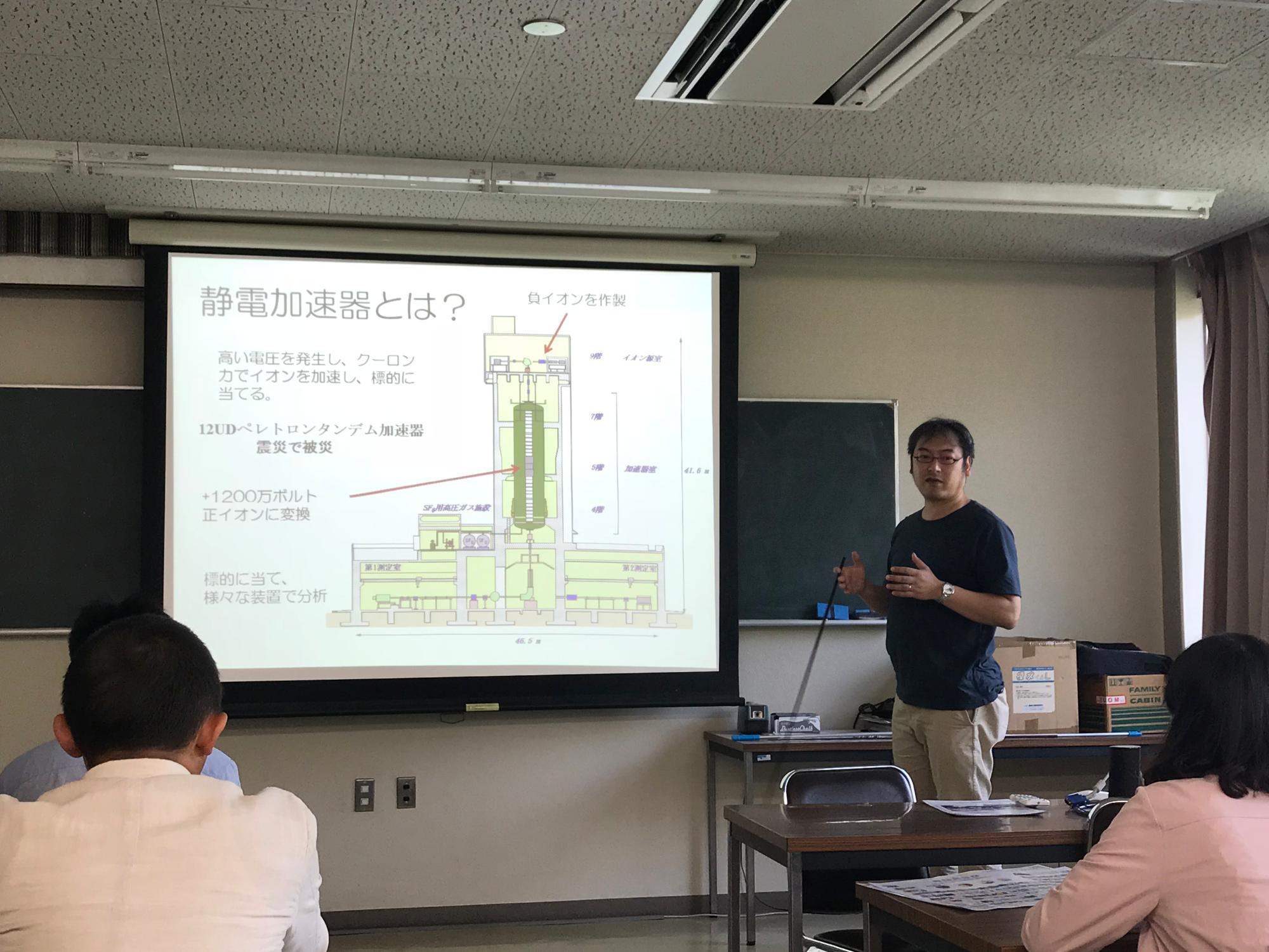 行程开始,筑波大学副董事长Caroline F.BENTON教授为代表团举行了亲切的欢迎仪式,介绍了筑波大学的基本情况以及筑波国际战略综合特区的概况。随后,公司师生与哈萨克斯坦的3名师生同行,参观了研究基础综合中心应用加速器部门。在这里,员工们听老师讲解了静电加速器的工作原理,并带领员工参观了静电加速器和设备中控室,以简单易懂的语言和操作演示讲解了考古学中碳14断代鉴定方法。