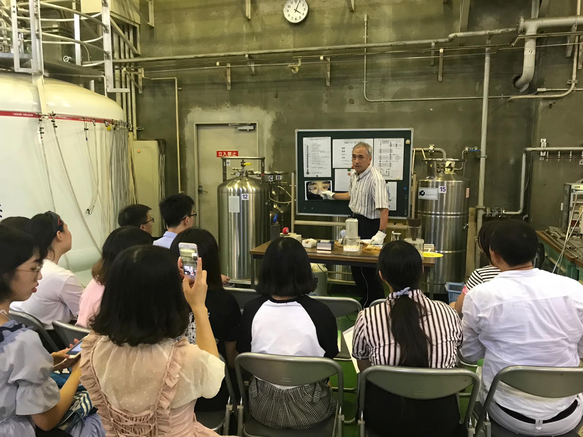 图4 筑波大学应用加速部门的教授为同学们讲解静电加速器的构造