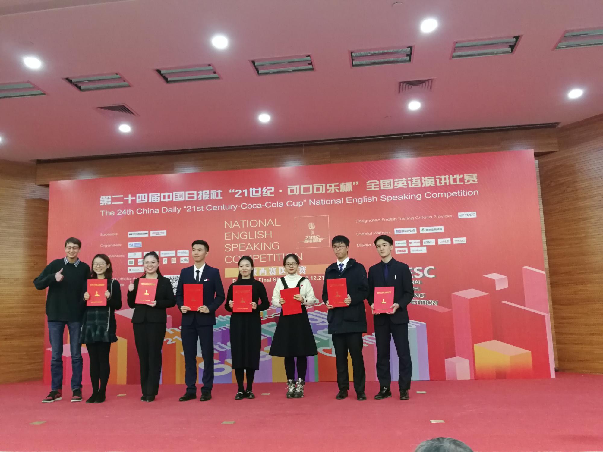 经过一下午的角逐,刘永祎同学排列全场第九名,最终获得第24届中国日报社“21世纪·可口可乐杯”英语演讲比赛陕西赛区的二等奖。