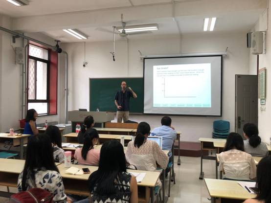 6月12日上午,通过南校区C-129智慧教室网络和平台,Richard Day教授通过实时远程在线给大家带来题为An Introduction to Extensive Reading的讲座,通过对比各种阅读方式指出泛读的重要性,进而论述了泛读应用的原则并具体介绍了将泛读融入课堂教学的各种活动。