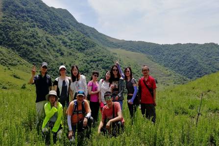 户外线路,没有路标、没有信号,老乡们热情指路,大家摸索前进,来回折返,耗费了很多体力,走了好多山路。同志们没有气馁,充满信心,几经周折终于到达草甸。草甸上视野开阔,绿草如茵,点缀着羊群、梯田和农舍,远处山峦起伏,蓝天白云。艰苦之后的收获尤为甜美,山风阵阵吹干了汗水,伙伴们的脸上洋溢着灿烂的笑容,山中美景尽收眼底,漫山青翠,分外动人。