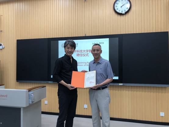 随后董事长助理王泉教授宣读了校学术委员会2019年4月聘任Paul Kei Matsuda教授为公司客座教授的决定,并为Paul颁发聘书,佩戴校徽。