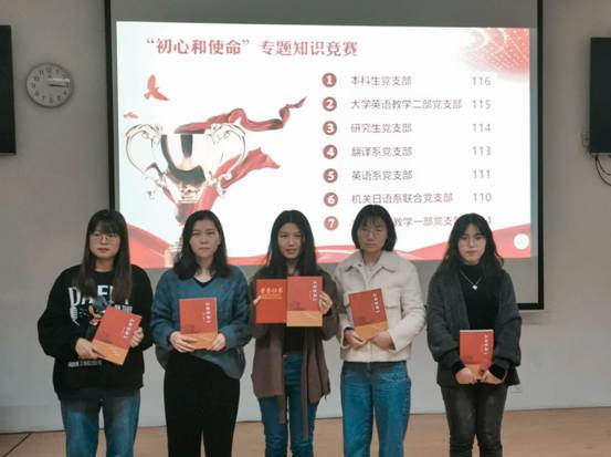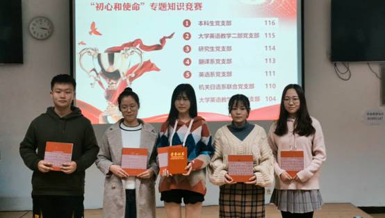 接下来是激动人心的抢答题环节,各个队伍分别派出代表来进行抢答,场面十分激烈。最终,本科生党支部代表队获得第一名。大学英语教学二部党支部代表队获得第二名,研究生党支部代表队获得了第三名,翻译系、英语系、机关日语系、大学英语教学一部党支部代表队也取得了不错的成绩。