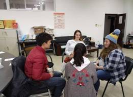 活动开始,大家逐一自我介绍、互动问答,谈论家乡、兴趣爱好。当发现有同学很紧张,陈老师风趣地说道:“咱们中国员工在面对外国人的时候,一般比较害羞。其实外国人也是如此,他们也会害羞。”在场中美老员工都会意地笑了,一名美国老员工特别提到他喜欢和中国员工交流的原因之一就是要跳出自己的“舒适圈”,克服交流中的害羞心理。