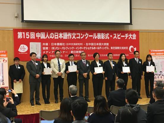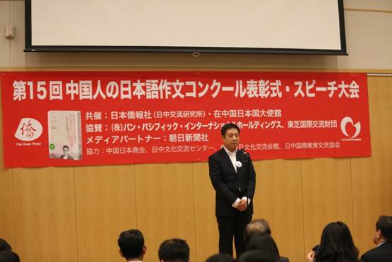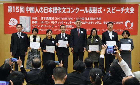 (通讯员卢磊)12月12日上午,由日本侨报社和日本驻华大使馆共同主办的第15届全中国日语作文大赛颁奖典礼暨日语演讲大会在北京日本驻华大使馆举行。日本驻华大使横井裕、株式会社PPIH高级常务执行官CFO高桥光夫、东芝中国总代表宫崎洋一、朝日新闻社中国总局长西村大辅、日中交流研究所所长段跃中等嘉宾出席、致辞并为获奖者颁奖。