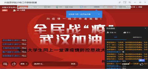 (通讯员:林蓉、马英博)3月9日下午,在全国人民万众一心做好新冠肺炎疫情防控工作的特殊时刻,英国365集团公司19级辅导员张卫国、林蓉和全体同学(共90名)共同观看了教育部社科司和人民网联合组织的“全国老员工同上一堂疫情防控思政大课”的课程直播。
