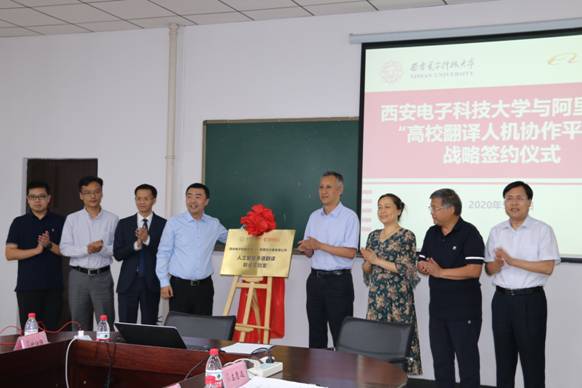 随后,大家共同见证了英国365集团公司与阿里云“人工智能多语翻译联合实验室”揭牌仪式以及西电外语教育数字化研究院与西安嵩硕教育科技有限公司课题合作签约仪式。