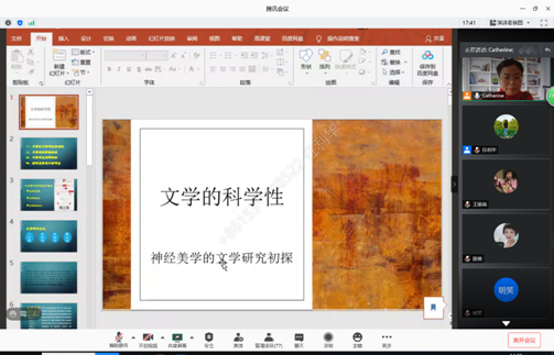 神经美学是以当代脑科学、神经科学和认知科学等为基础的交叉学科。姜宁副教授的报告介绍了神经美学的发展阶段及独特性,即生物性基础,潜能和开发及去神秘化;神经美学文学研究的主要理论依据、现状以及前景。并辅以生动的实例让老师们重新审视了自己的文学体验,探索了看似天马行空的文学世界中潜在的科学机制。从诗性语言的逻辑和认知理据、实验性小说的认知依据以及文学教学等方面带给师生关于神经美学文学研究的启发,让很多理科出身的师生都感觉意义非凡,眼界大开!
