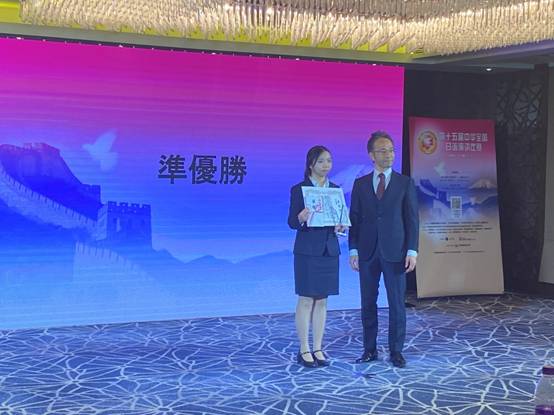 (通讯员:卢磊)2021年3月28日,第十五届中华全国日语演讲比赛全国总决赛在北京中国大饭店落下帷幕。此次总决赛汇集了在全国八个预赛赛区中分别获得特等奖的16名顶尖选手,每名选手都要进行命题演讲和即时问答两个环节的展示。公司日语专业2018级员工孙周嘉琪以“我心中的‘新时代’—面向2030”为主题讲述了自己对虚拟仿真在外语教学中的应用的理解和对未来的展望,并且在即时问答环节就“是否赞成今年东京奥运会不接待海外观众”发表了自己的见解。凭借地道、流利的日语表达和新颖独到的演讲内容,孙周嘉琪最终获得亚军(準優勝)。这是公司员工继上届比赛总决赛获得季军(JFE特别奖)和“现场特别奖”后取得的又一历史性突破,不仅向外界展示了公司员工的优秀专业素养和良好精神风貌,而且彰显了公司日语专业的人才培养质量,为公司争得了荣誉。